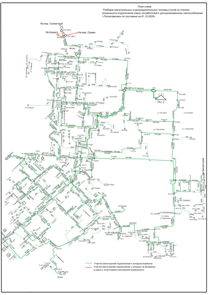 Протяжённость тепловых сетей предприятия составляет 210,36 км по г. Петропавловску и имеет на своём балансе: